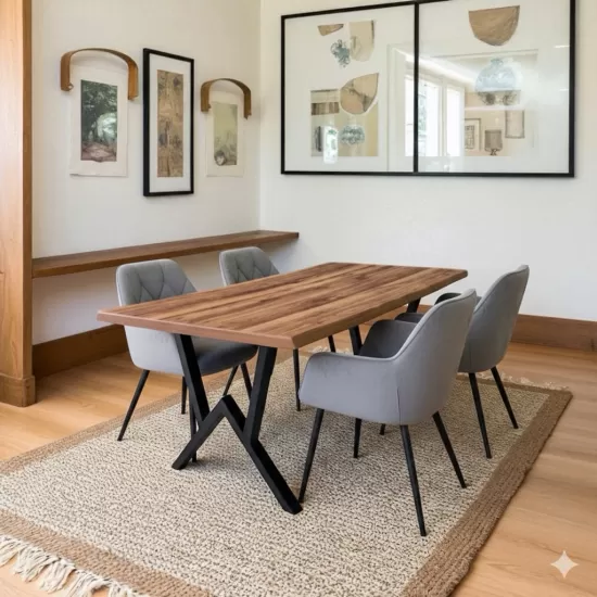 - Метал: Металот е широко користен во изработката на мебел, нудејќи неколку предности во однос на другите материјали. Тој е многу отпорен на абење и кинење, што го прави идеален за мебел наменет за секојдневна употреба во тешки услови. Тој совршено ја одржува својата форма и структура, обезбедувајќи стабилност и долготрајност на мебелот. Покрај горенаведените својства, металот може да има и други карактеристики, како што се антимикробно дејство (бакар) или суперспроводливост (молибден).