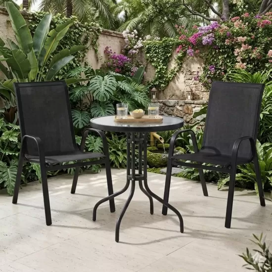 Модерен и удобен градински стол со цврста метална конструкција и мрежесто седиште за пријатно седење. Отпорен на надворешни услови и лесен за одржување, идеален за двор, тераса или балкон. Минималистичкиот дизајн овозможува лесно вклопување во секој надворешен простор.