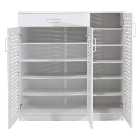 Спецификацији: Конструкција од висококвалитетна оплеменета иверица и MDF. Содржи 3 врати на шарки, 9 внатрешни полици и 1 фиока. Капацитет: 30 пара.