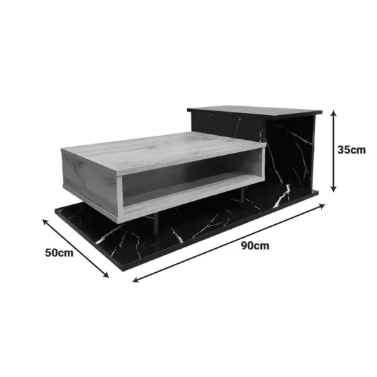 Поседува две површини кои нудат доволно простор за поставување на книги, списанија или декоративни предмети.