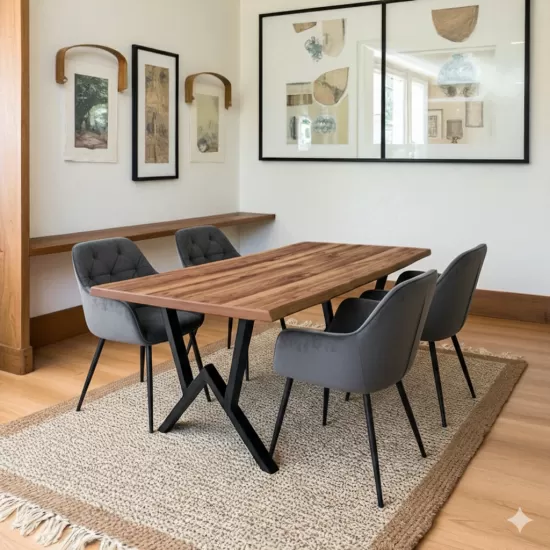 Сет NOLIS 4 антрасит столици со дрво боја медиапан 180 см маса