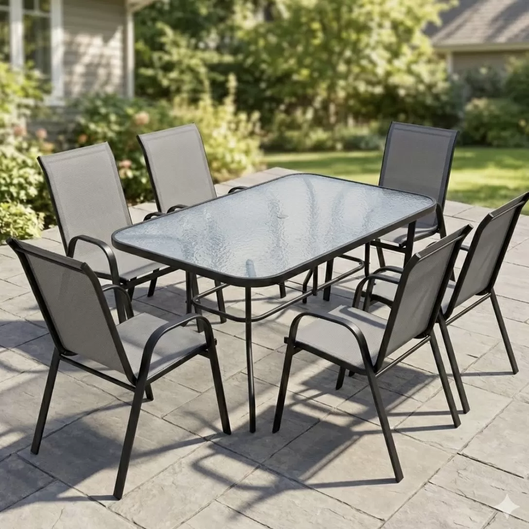 Модерен и удобен градински стол со цврста метална конструкција и мрежесто седиште за пријатно седење. Отпорен на надворешни услови и лесен за одржување, идеален за двор, тераса или балкон. Минималистичкиот дизајн овозможува лесно вклопување во секој надворешен простор.